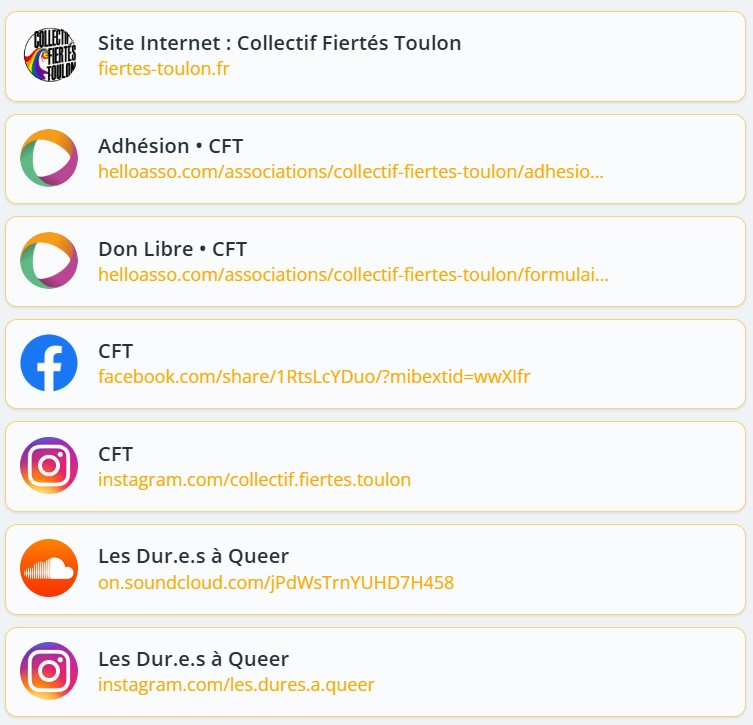 Tous les liens utiles en un seul lien : https://allmylinks.com/collectif-fiertes-toulon