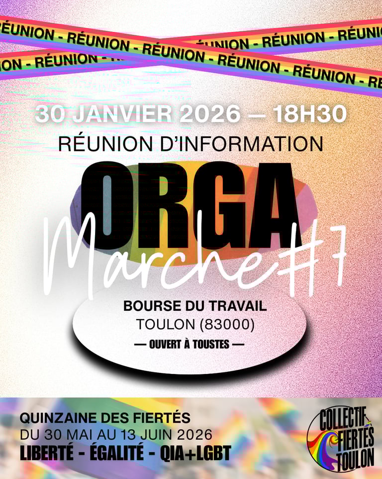 Retrouvez toutes les informations sur l'évolution de l'organisation de la quinzaine des fiertés sur la page dédiée : https://fiertes-toulon.fr/quinzaine-des-fiertes-2026