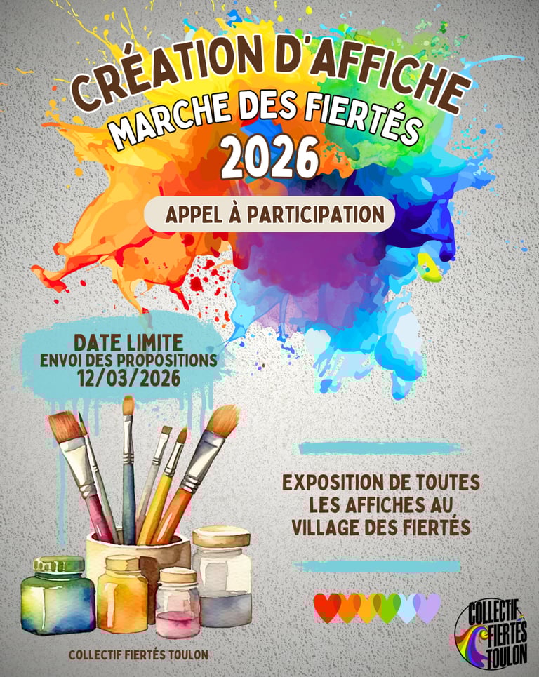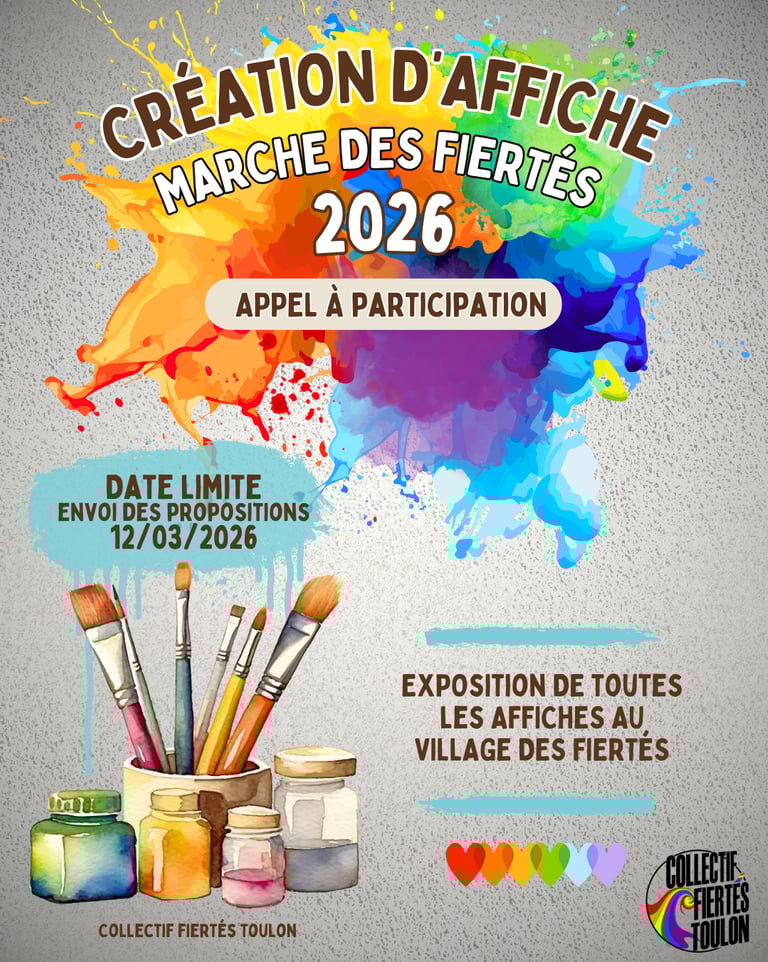 Comme chaque année, le collectif fiertés Toulon fait appel à votre créativité pour concevoir l'affiche qui représentera la marche des fiertés 2026.