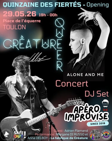 Temps fort majeur de cette édition, la Marche des Fiertés de Toulon rassemblera le public, les associations, les artistes, les allié·es et les partenaires autour d’un grand moment de visibilité, de revendication et de célébration. Le cortège comptera 3 chars dont un char du Petit apéro improvisé,un char Bouillotte Klub et un char des Commerçants animé par DJ la Beky
