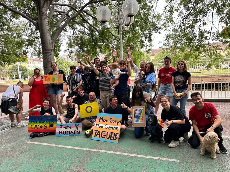 Lors d'une réunion d'organisation de la marche, nous avons voté pour le slogan 2025 : nos genres, nos vies, nos droits. Plus fort-e-s ensemble
